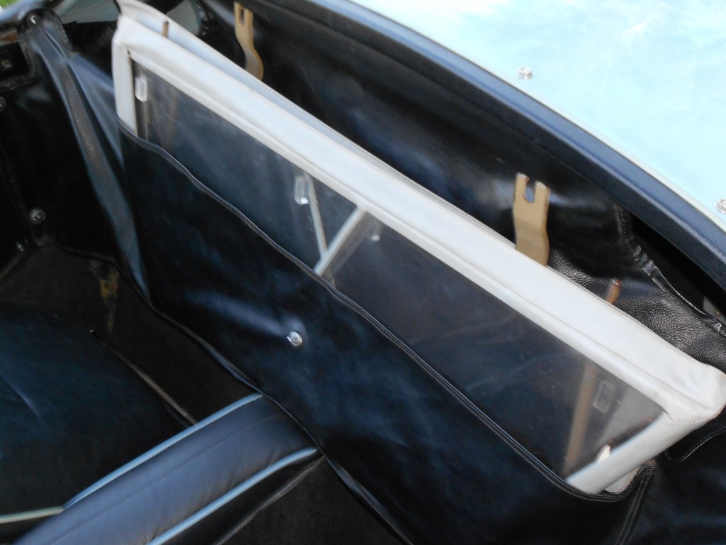 Side curtains in pouch behind seats. These are in like new condition; most likely rarely ever on the car. Both the top and frame are in excellent condition as well. There is also the original full leather tonneau cover for the car. It is in good shape with a small tear in it that has been neatly sewn/repaired. We feel that it should not be replaced as the repair is good and appears to have been done quite some time ago and the tonneau itself has a wonderful feel and suppleness to it as only old leather can provide; unlike today’s vinyl tonneaus. There is also a custom fitted indoor dust cover to come with the car.