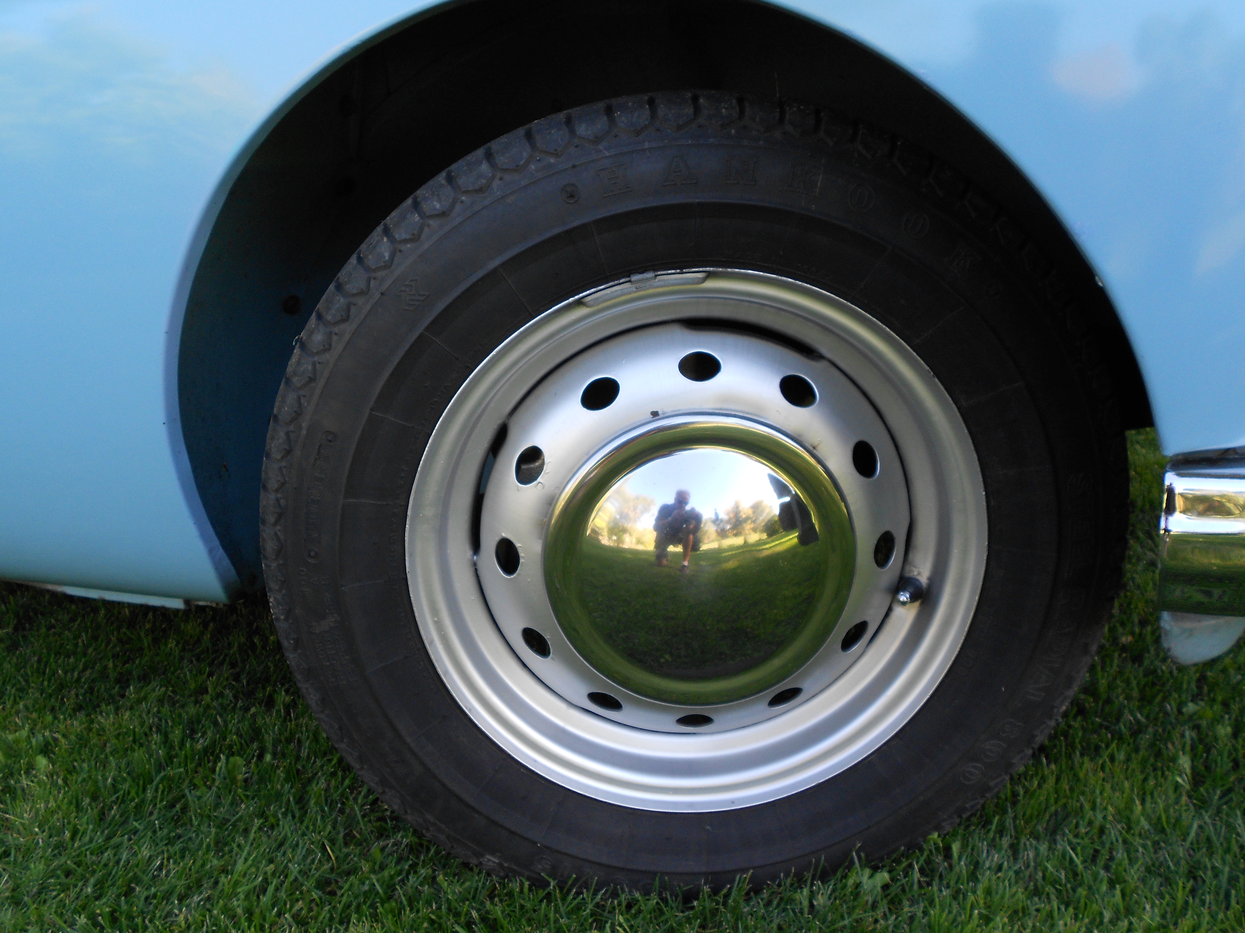 The car is riding on new (2012, less than 2,000 miles ago) proper size 165 HR15 Vredestein Sprint Classic radial tires; a great improvement in ride and handling over bias ply tires! (See below for other work done to car in 2010).