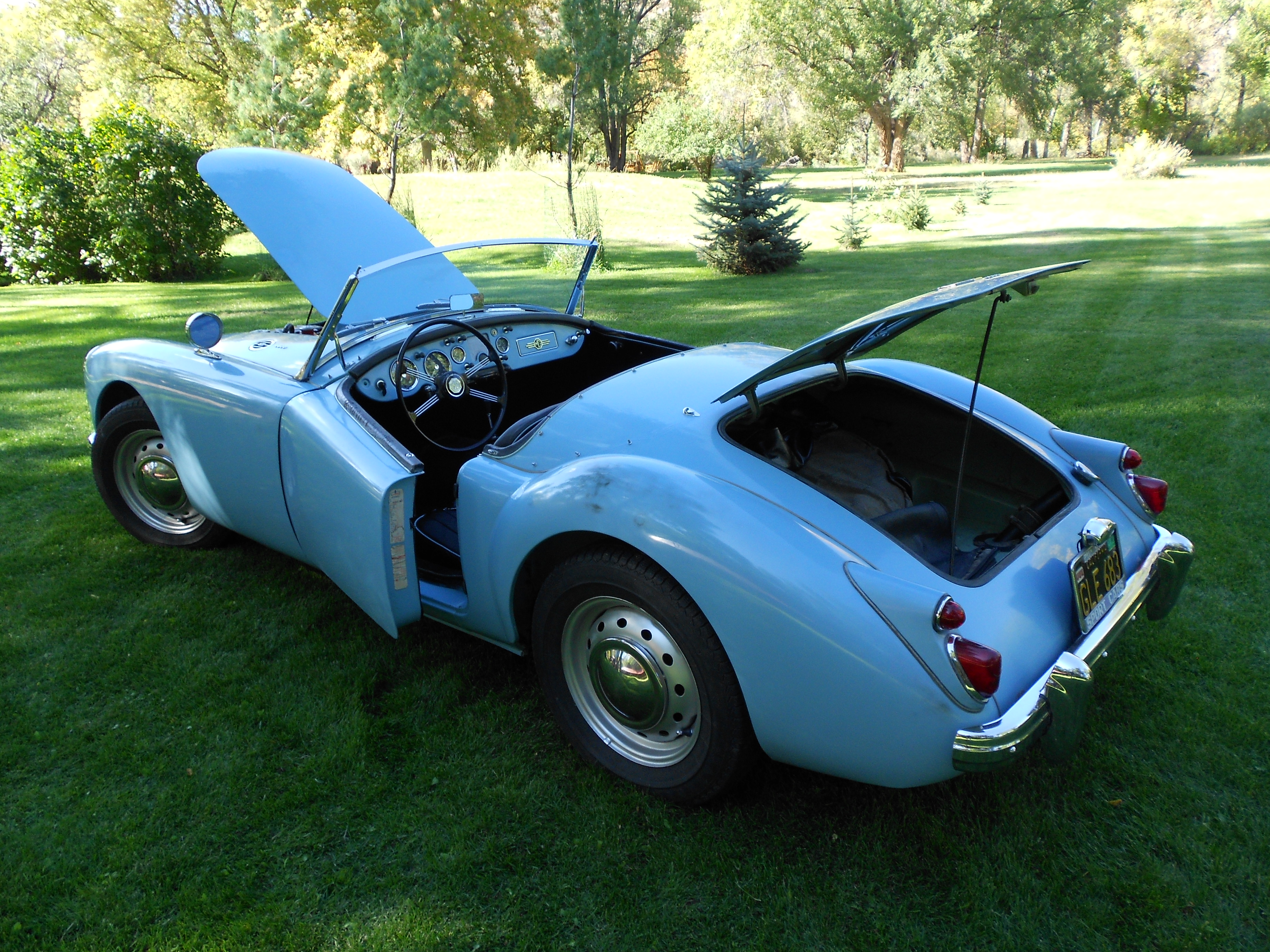 A lovely car wearing much of it’s original 55 year old Iris Blue paint!