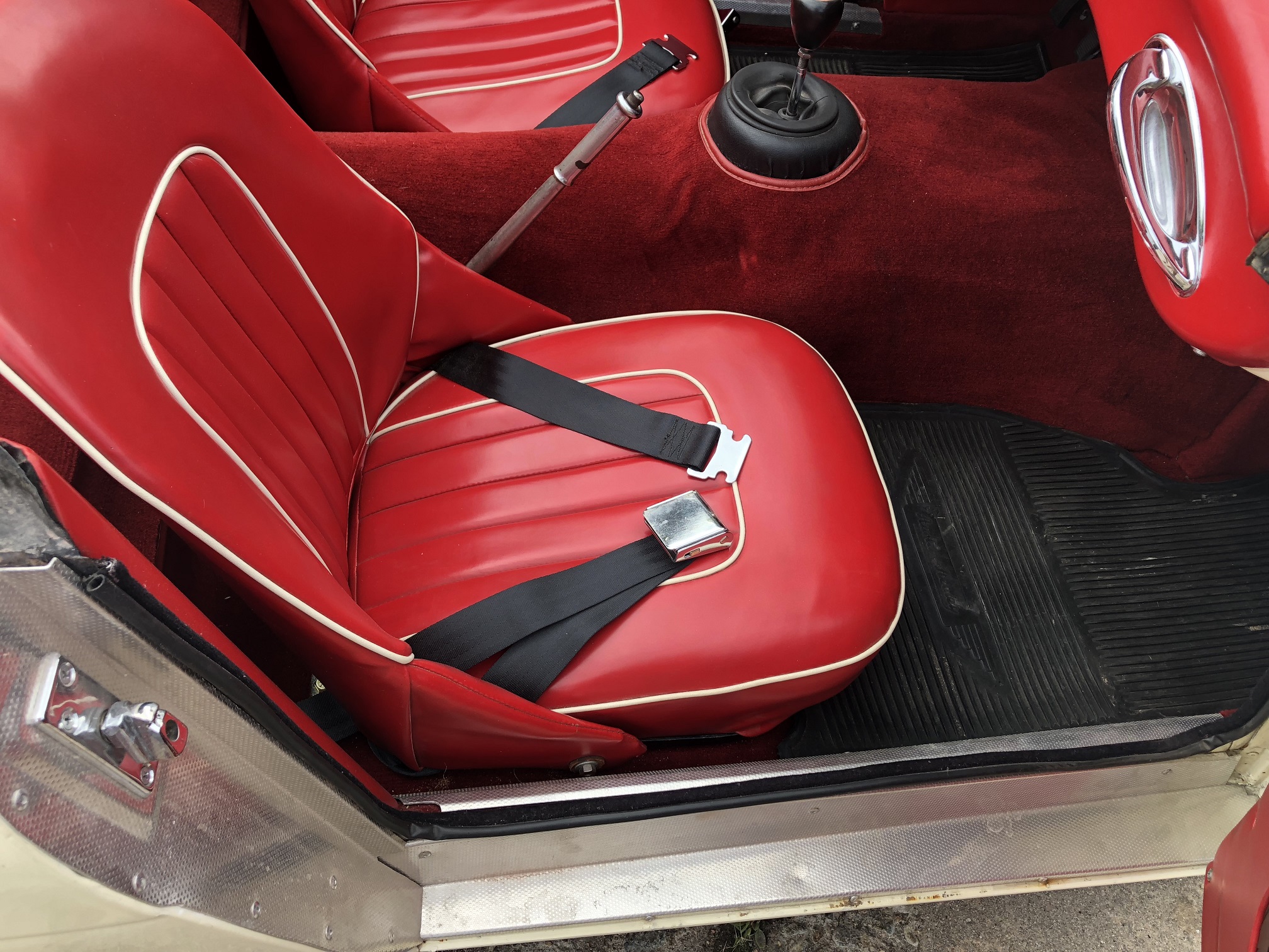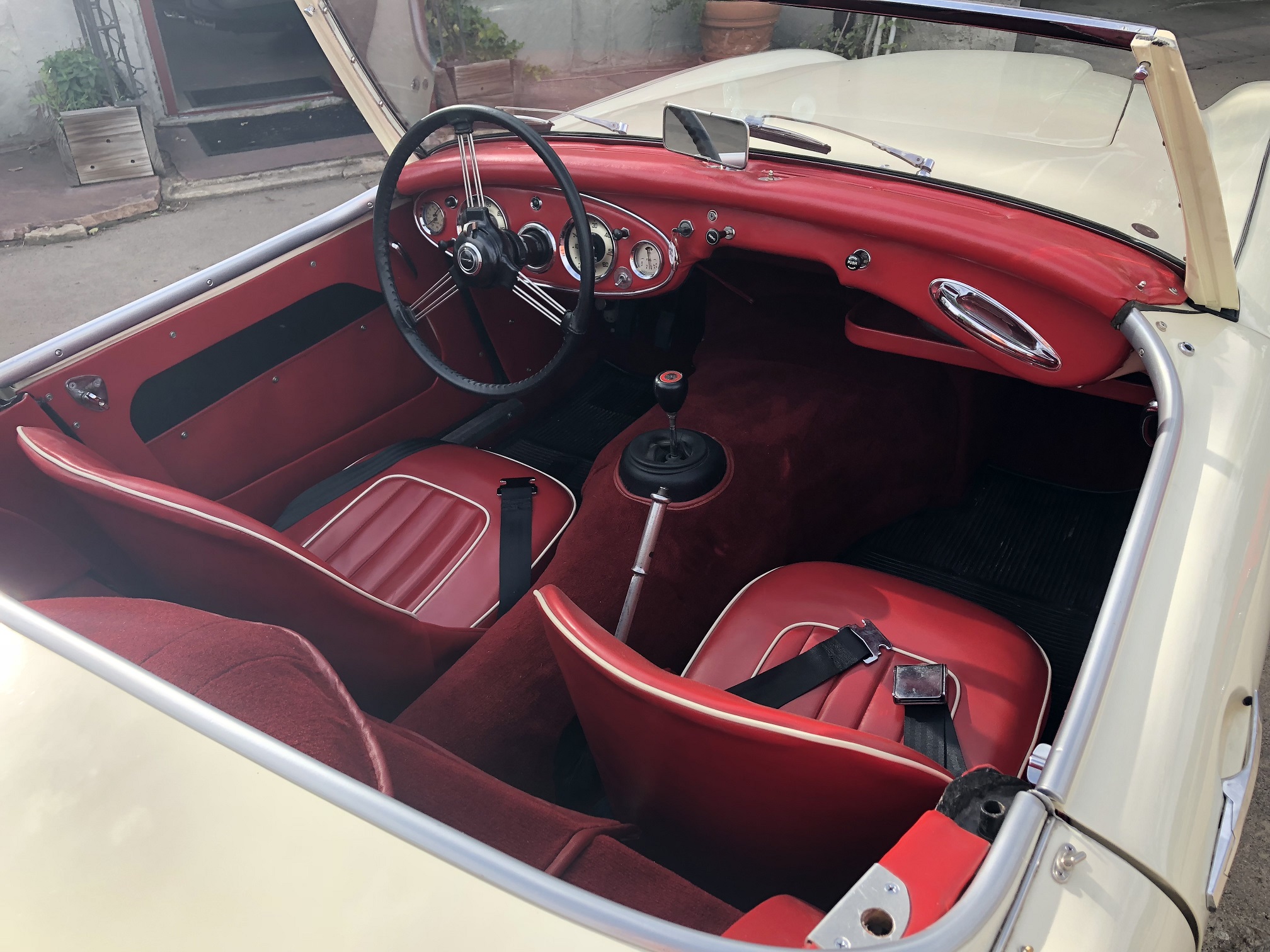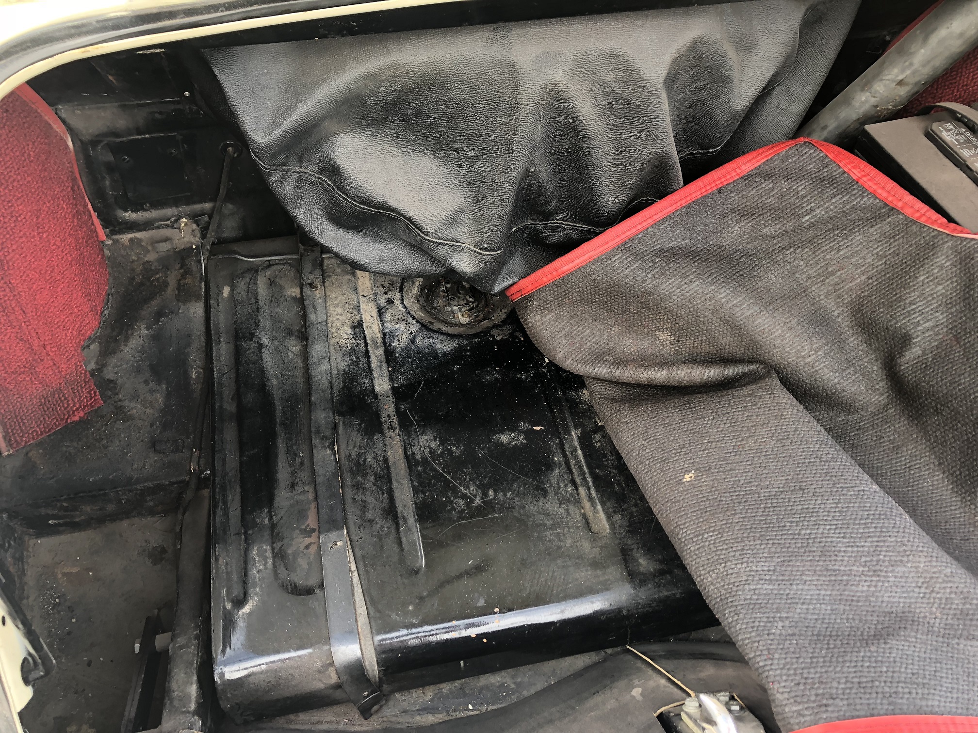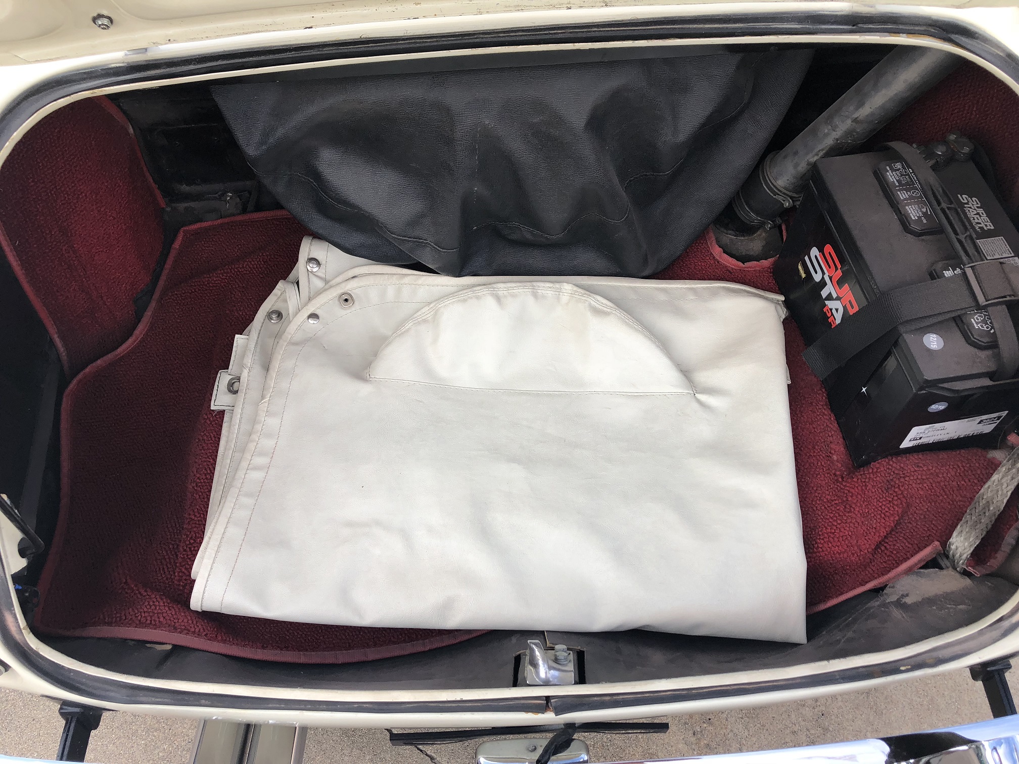 Another practical modification is use of a single 12v (positive earth) battery located in the boot as were later Healeys. The original battery configuration used two 6v batteries mounted beneath the floor behind the seats (6v batteries for the car are still available if desired).