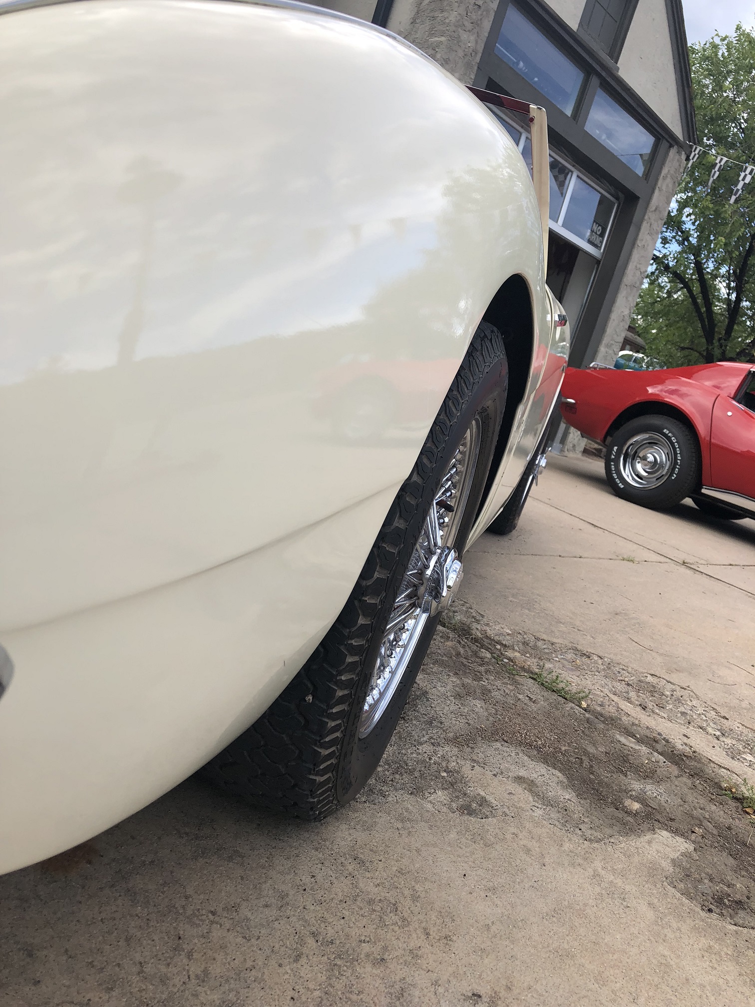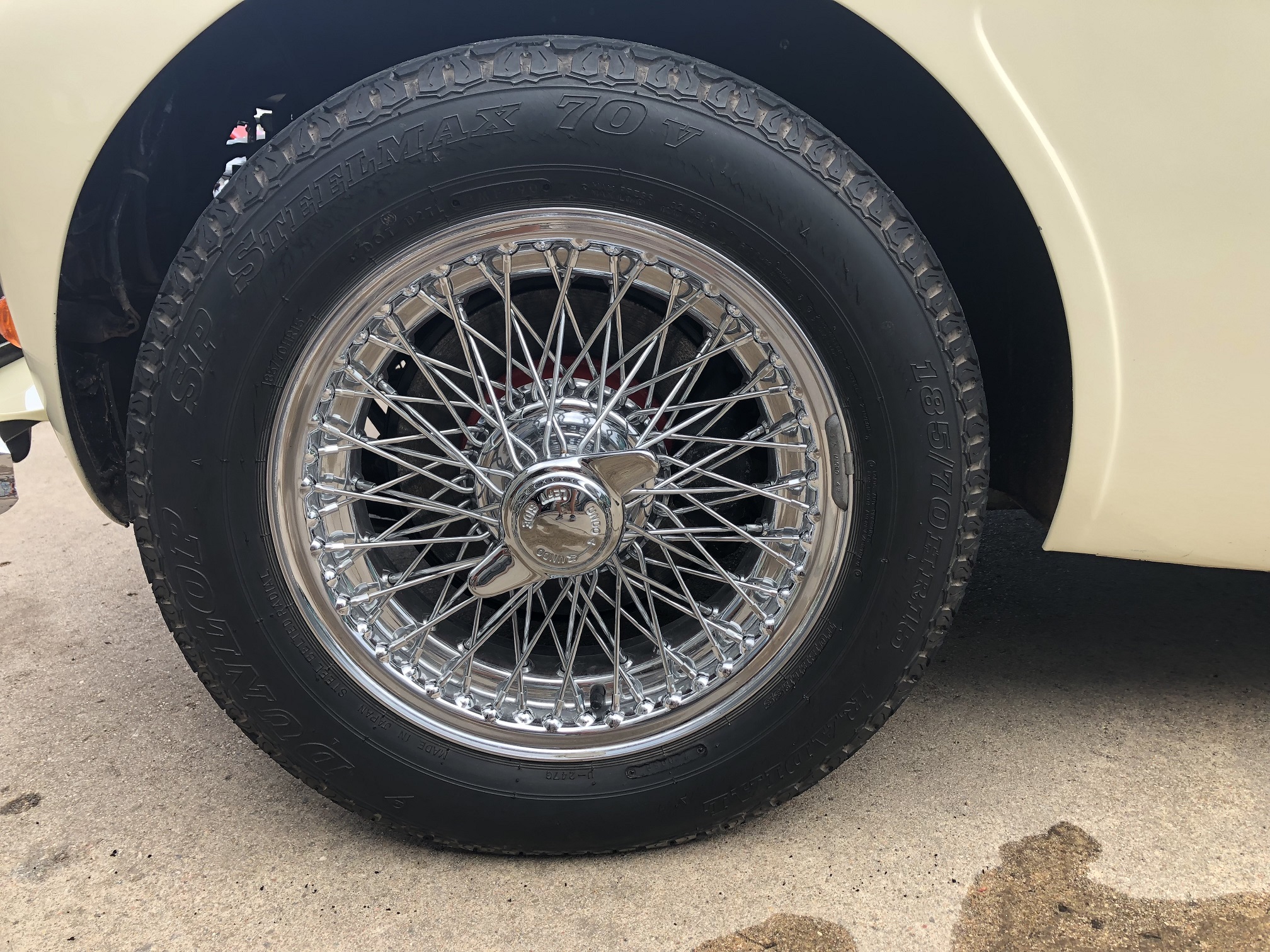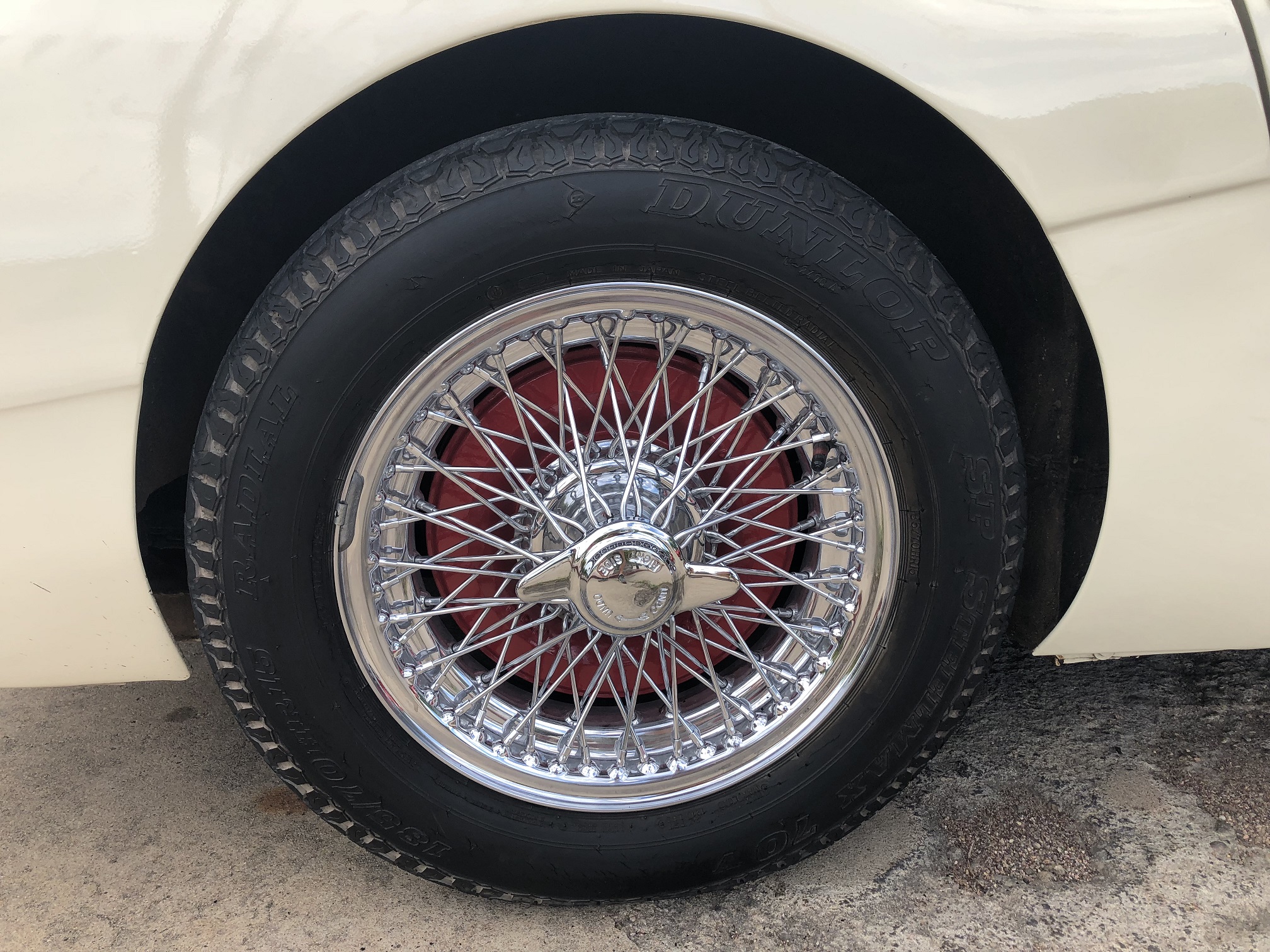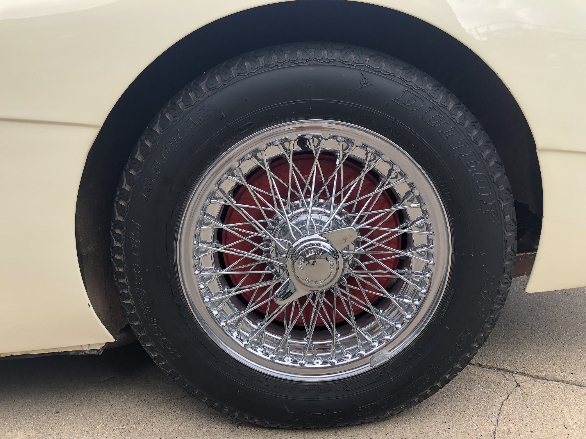 Wheels are Dayton 72 spoke chrome wire wheels shod with Dunlop radials.