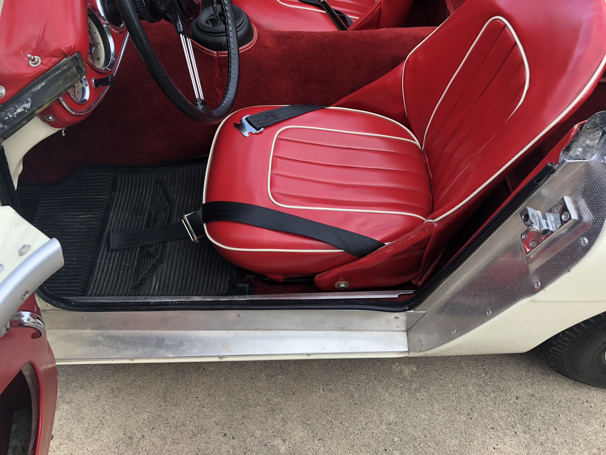 The red interior (true to its original build) has been re-done in an high quality manner and appears like new. All seats, door panels, dash, carpets, etc. are in excellent condition.