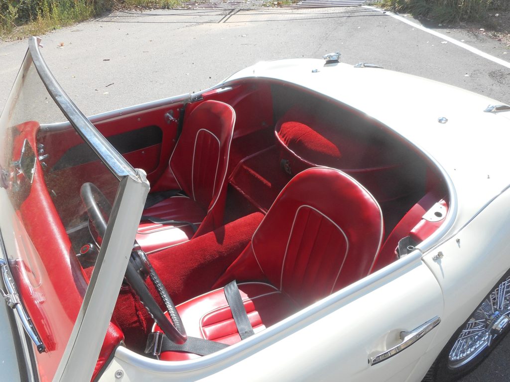 Beautiful Two Seat Austin Healey 3000 BN7 For Sale. This is Healey # H-BN7-L/11637, built August 16-17, 1960 and has been restored in its original finishes of Ivory White with Red interior. In very good condition, with Overdrive, White tonneau and top. JUST SOLD – THANK YOU